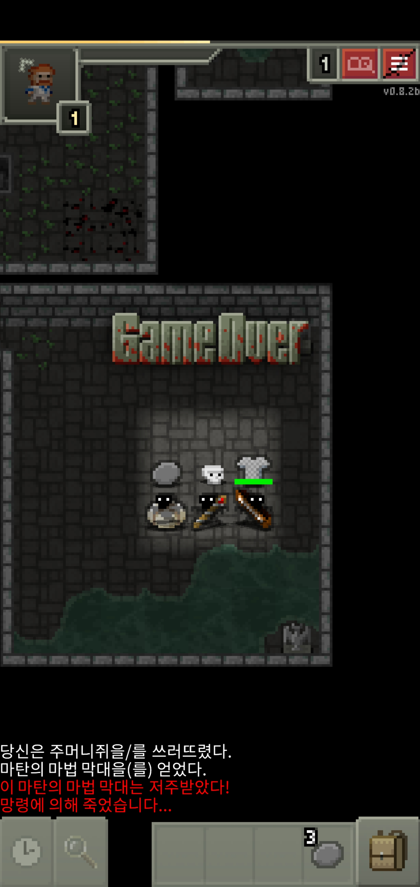 죽어버리면 그냥 이 화면이 끝이예요.