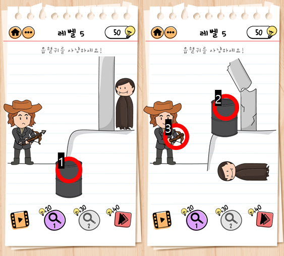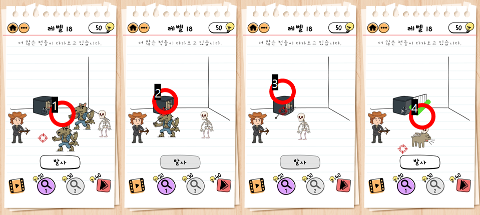 2번 발사를 클릭하여 세마리 전부 사냥해주시면 됩니다.