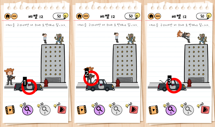 주인공을 2번 위치(차 트렁크 위)에 올려준 후