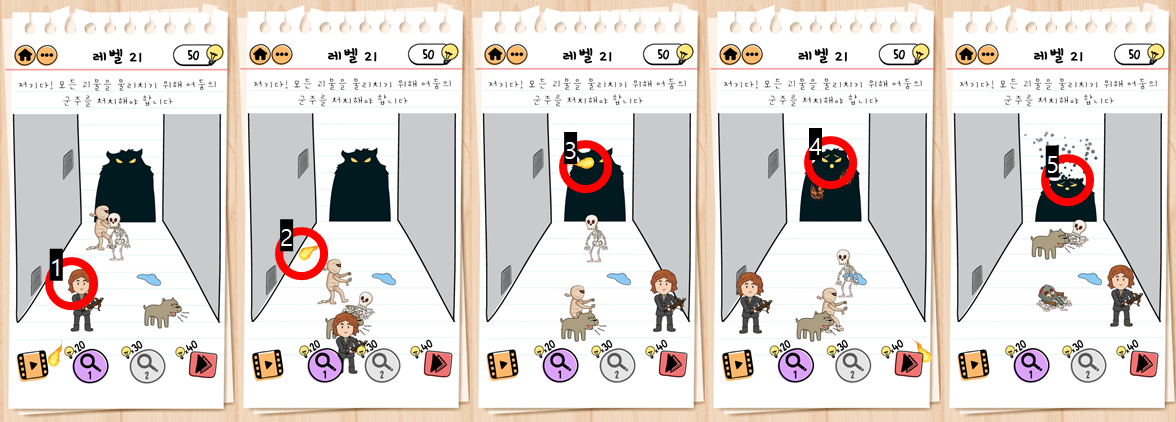 우선 주인공을 이리저리 움직여 좀비를 피해줍니다
