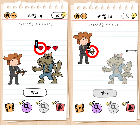 한번에 화살로 해당 늑대의 체력을 다 깎아줘야 합니다.