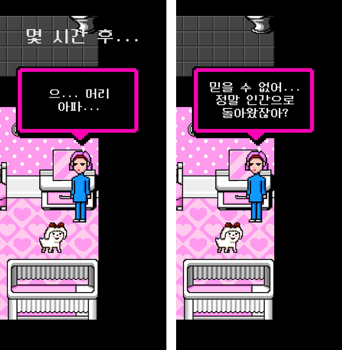 쓰러졌던 주인공은 사람이 되어 깨어나게 됩니다.
