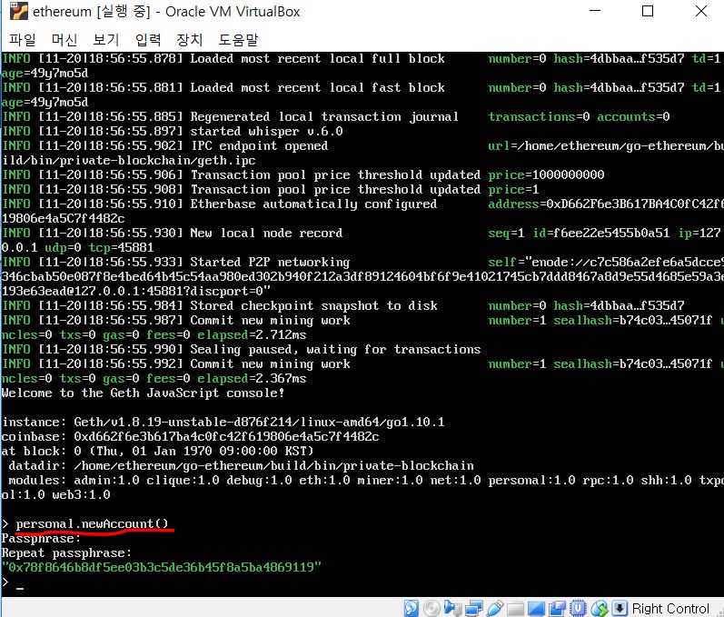 아마 여러분들은 personal.newAccount()를 한번만 해 주셔서